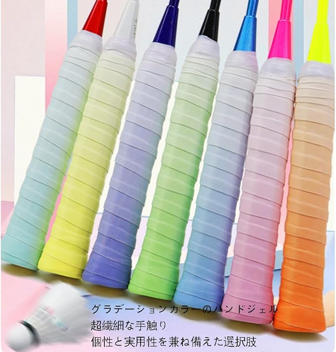【製品仕様】おしゃれなグラデーションデザインで、個性的なラケットを演出します。さらに、7色のバリエーションから自由に組み合わせることができ、気分や用途に応じて異なるスタイルを楽しめます。(仕様:長さ約120cm、幅約2.5cm)