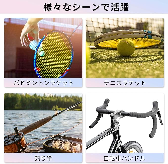 【汎用性が高い】釣り竿からラケット、ハンドルまでさまざまな用具に対応可能。