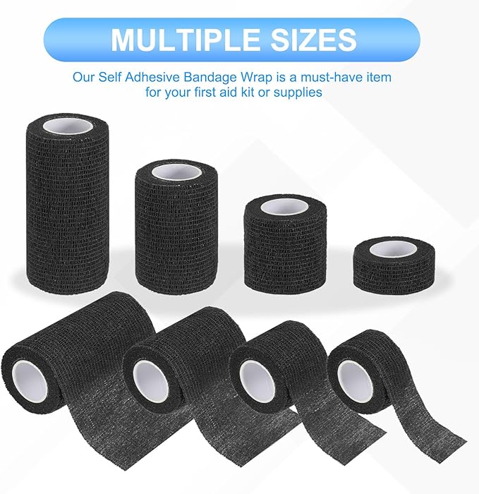 PATIKIL 1"/2"/3"/4" セルフアドヘーシブバンデージラップ 4個 5ヤード エラスティック セルフ通気性セルフアドヘーシブ ラップテープ 伸ばしアスレチックスポーツ リスト アンクル アウトドアテープ 黒 | KAZESHOP