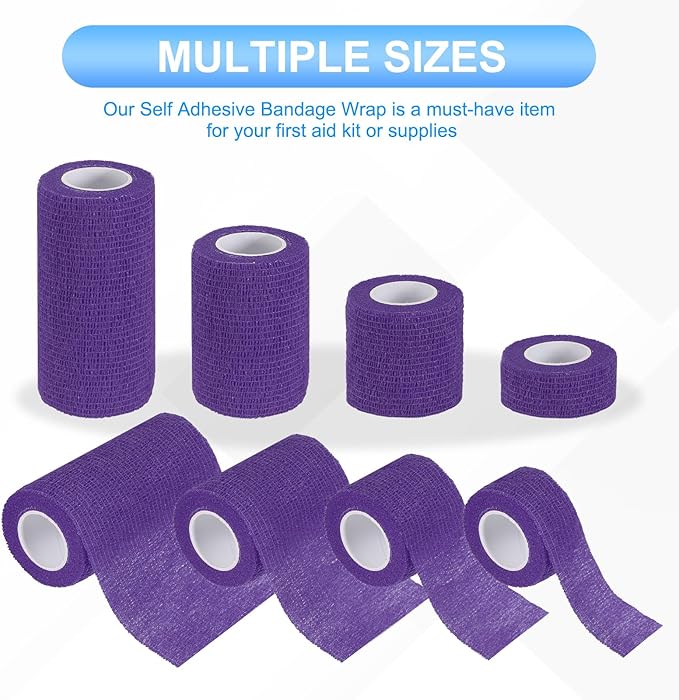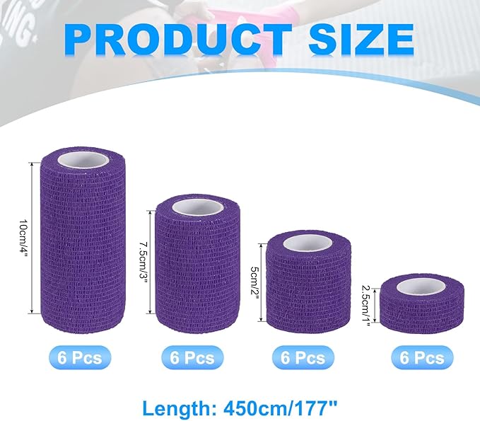 PATIKIL 1"/2"/3"/4" セルフアドヘーシブバンデージラップ 24個 5ヤード 弾性自己通気性セルフアドヘーシブ ラップテープ 伸ばしアスレチックスポーツリスト足首アウトドアテープ ダークパープル | KAZESHOP