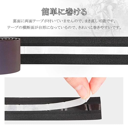 【簡単に取り付ける】中間で両面テープをハンドルの周方向に巻いておくと巻き戻りもなく上手に巻けます。エンドプラグと仕上げテープも含まれています。伸縮性があり接着剤でしっかり固定され、付属の補助テープとバーエンドキャップを使用し、簡単にハンドルバーに巻けます。