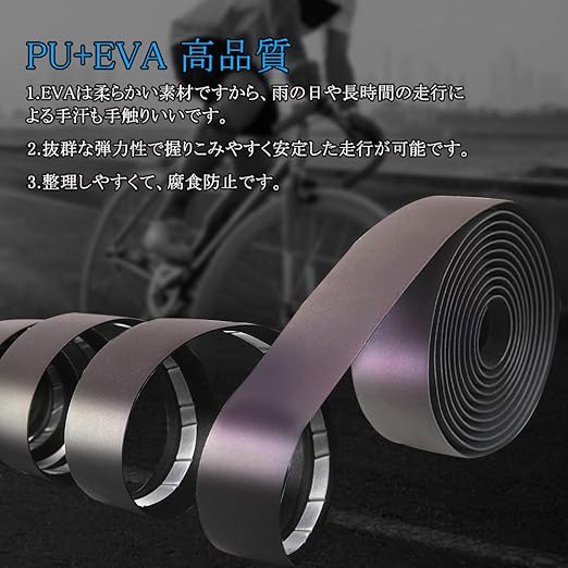 【高品質素材】柔らかいEVAとPUを使用し、雨の日や長時間の走行による手汗も手触りいいです。抜群な弾力性で握りこみやすいです。また、表面は汚れも落ちやすいです。
