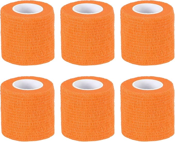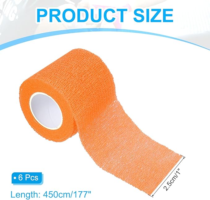 カラー:明るいオレンジ;素材:不織布;長さ:177"(450 cm);幅:1"(2.5 cm);梱包リスト:自己粘着性包帯巻き6個