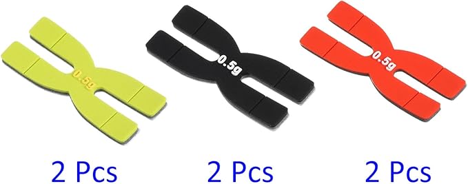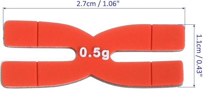 パッケージ内容:ラケットバランス調整テープ6個入り(各0.5g、サイズ:2.7x1.1cm/1.06x0.43インチ(縦x横))。