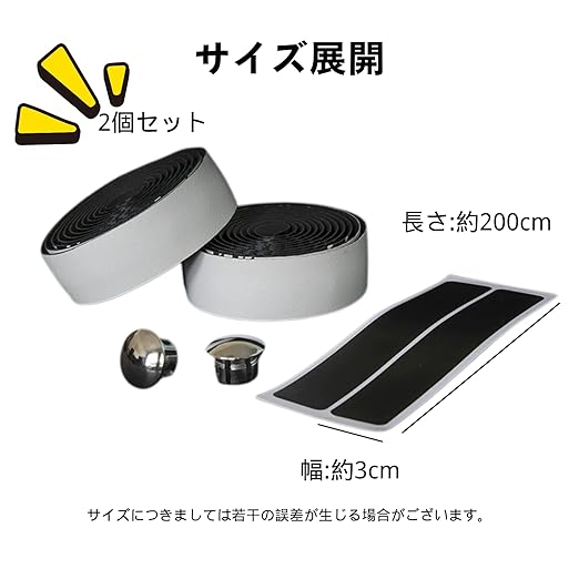 【簡単取り付け】裏面に両面テープが貼られているので、ハンドルに巻き付けるだけの簡単作業で取り付けられます。エンドキャップも付属しているので、巻き始めや巻き終わり部分の末端処理もスムーズ。初心者の方でも手軽に取り付けられ、愛車のカスタマイズを楽しめます。