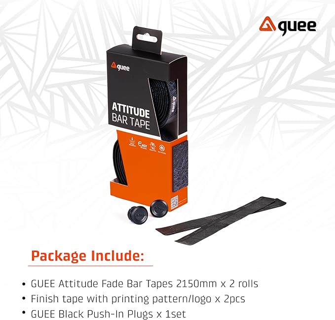 Attitude Fadeバーテープは、サステナビリティへのコミットメントに合致する環境に優しい素材でデザインされています。グラデーションカラーのユニークなパターンが特徴で、自転車のハンドルバーに鮮やかでスタイリッシュな雰囲気を添えます。グラデーションデザインは美しいだけでなく、独特でモダンな美しさを際立たせます。 Attitudeシリーズは、環境に優しく低炭素な製造プロセスとサイクリングパフォーマンスを融合させるというGueeの新たな挑戦を体現しています。Attitude Fadeは、環境への責任、パフォーマンス、そしてスタイルが完璧に融合した製品です。 Attitude Fade は、以下に挙げる特徴を備えて特別に設計されています。 ・環境に優しいTPU素材:溶剤不使用、低炭素製造プロセスで加工された環境に優しいTPU素材を採用しています。環境への影響を最小限に抑えながら、テープの耐久性と質感を確保し、優れた滑り止め効果と快適な使い心地を提供します。 ・EVAフォーム素材:テープの裏面には衝撃吸収性に優れたEVAフォーム素材を採用。ロングライドでもレジャーでも、快適で安定したハンドコントロールを実現します。荒れた路面からの衝撃や振動を効果的に吸収し、手の疲労を軽減し、スムーズな乗り心地を実現します。長距離ライドや様々な路面状況での走行に最適です。 ・滑り止めグリップ: バーテープの表面はテクスチャ加工が施されているため、濡れた状態でもしっかりとしたグリップが得られ、走行中に自信とコントロールが得られます。 ・アティテュードフェードバーテープは、虹色のフェードカラーで幾何学模様をダイナミックに表現し、どんなシーンでもあなたのバイクを際立たせます。この鮮やかなデザインは、バイクの見た目の魅力を高めるだけでなく、あなたの大胆な個性とサイクリングへの愛を体現します。 Attitude Fadeシリーズは、あらゆるライディングコンディションで最高のグリップ力を発揮するように設計されています。その粘着性と優れた耐久性は、まさにこの目的に最適です。
