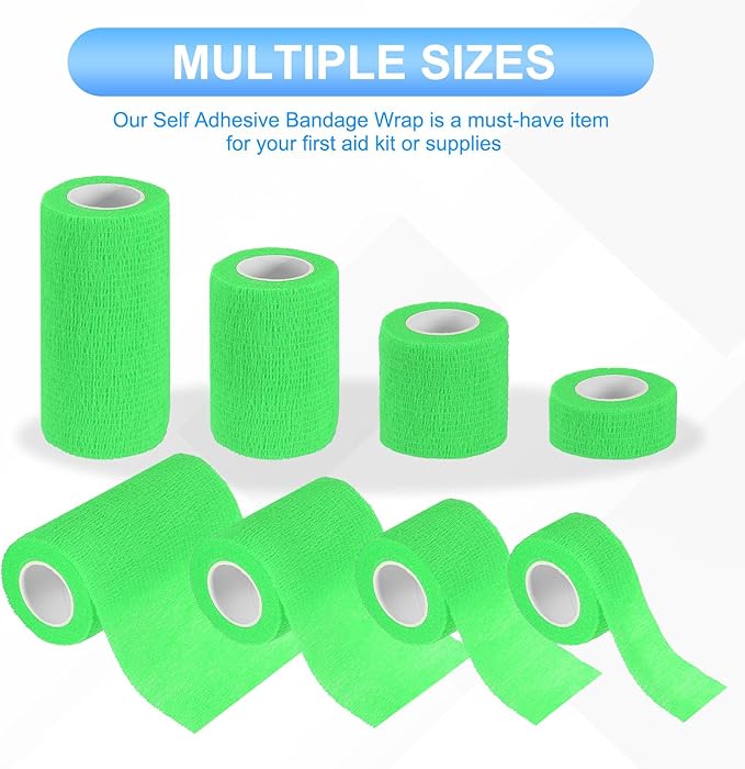 PATIKIL 1"/2"/3"/4" セルフアドヘーシブバンデージラップ 16個 5ヤード エラスティック セルフ ブレスラブル セルフアドヘーシブ ラップテープ 伸ばし アスレチック スポーツ リスト アンクル アウトドア テープ 明るい緑 | KAZESHOP
