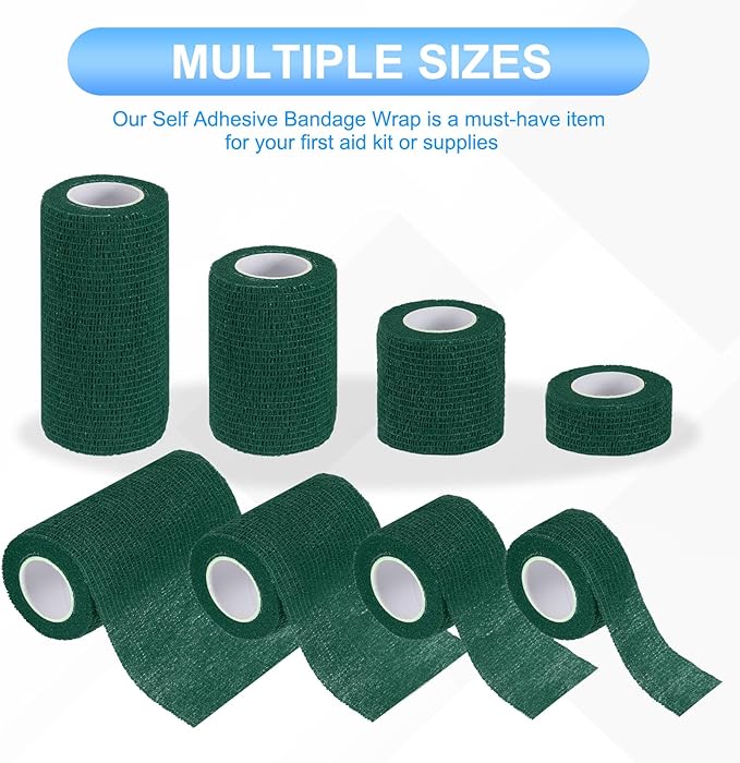 PATIKIL 1"/2"/3"/4" セルフアドヘーシブバンデージラップ 24個 5ヤード エラスティック セルフ通気性セルフアドヘーシブ ラップテープ 伸ばしアスレチックスポーツ リスト 足首 アウトドアテープ ダーク緑 | KAZESHOP
