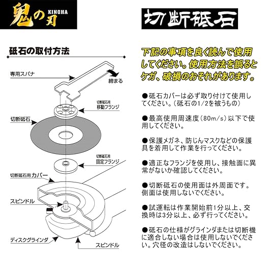 鋭い切れ味で力を入れず軽く押すだけで、ステンレス・特殊鋼・非鉄金属などに適した切断砥石です。もちろん耐久性にも抜群です。ステンレス・特殊鋼・非鉄金属などに適した切断砥石です。もちろん高硬度材の切断にも抜群です。両面補強型・高耐久仕様。バリ、焼けが少なくフラットな切断面と高精度な切り出し寸法が得られます。 保護メガネ・マスクなど安全保護具を着用して正しく安全にご使用下さい。 ・オーバースピードや側面使用はしないでください。 ・砥石に、カケ、歪み、ヒビ、ワレ、水ぬれ、油ぬれなどの使用上有害な欠陥がないことを確認してください。 注意:箱裏面にて取扱い説明をよく読み正しくお使い、本来の用途以外で使用しないで下さい。