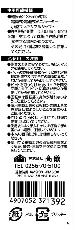 使用可能機種:軸径φ2.35mm対応 電動式・電池式ミニルーター・小型フレキシブルシャフト