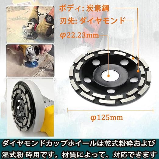 【仕様】外径:125mm;内径(穴径):22.23mm;ボディ: 炭素鋼;刃先: ダイヤモンド粒子