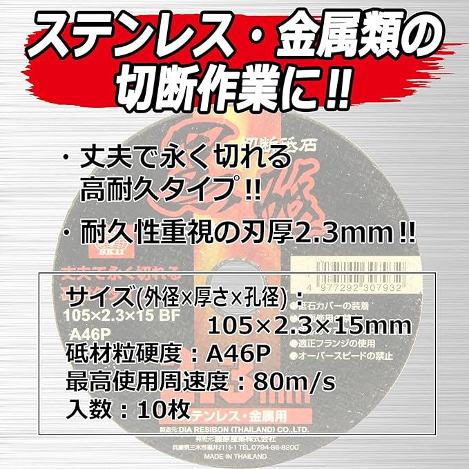 サイズ(外径 厚さ 孔径):105 2.3 15mm