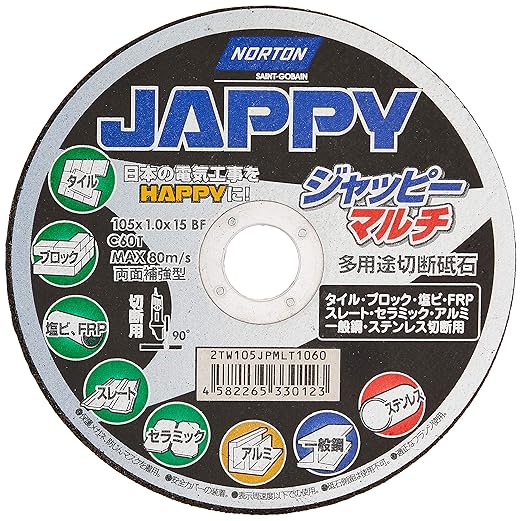 薄物の半磁器タイル、磁器タイル、塩ビ管、FRP管、PE管、プラスチック、ブロック、レンガ、鋳物などの非金属系材質の切断から薄肉の一般鋼、ステンレスの切断にご使用いただけます