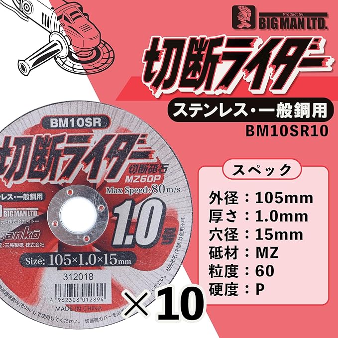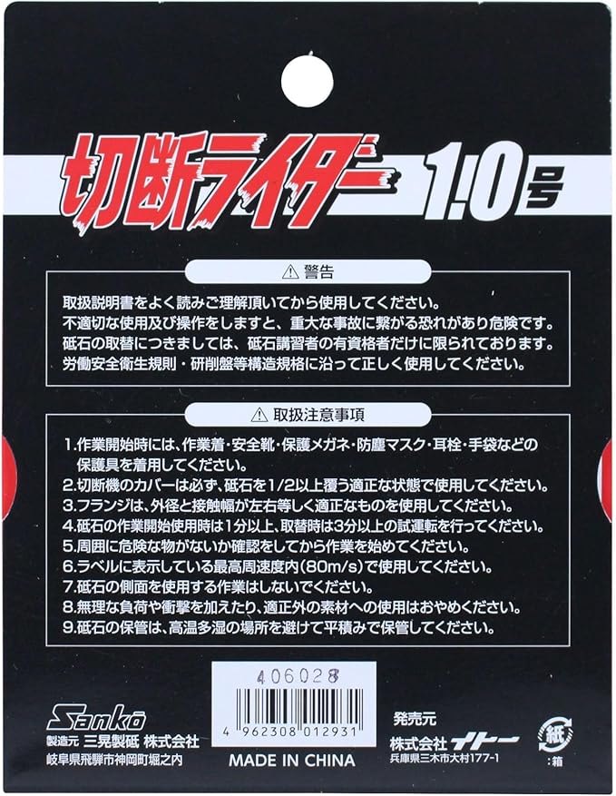 ・切断機のカバーは必ず砥石を1/2以上覆う適正な状態で使用してください。フランジは、外径と接触幅が左右等しく適正な物を使用してください。砥石の作業開始使用時は1分以上、取り換えは3分以上の試運転を行ってください。最高周速度内で使用してください。