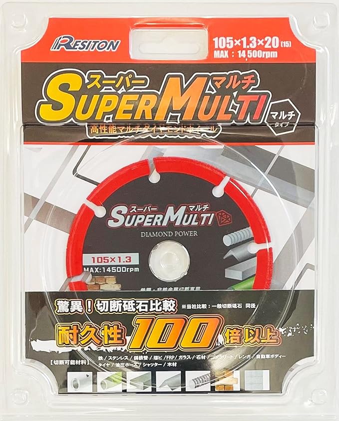 切断可能材料:鉄、ステンレス、鋳鉄管、コンクリート、レンガ、FRP、塩ビ、磁器タイル、木材、タイヤ