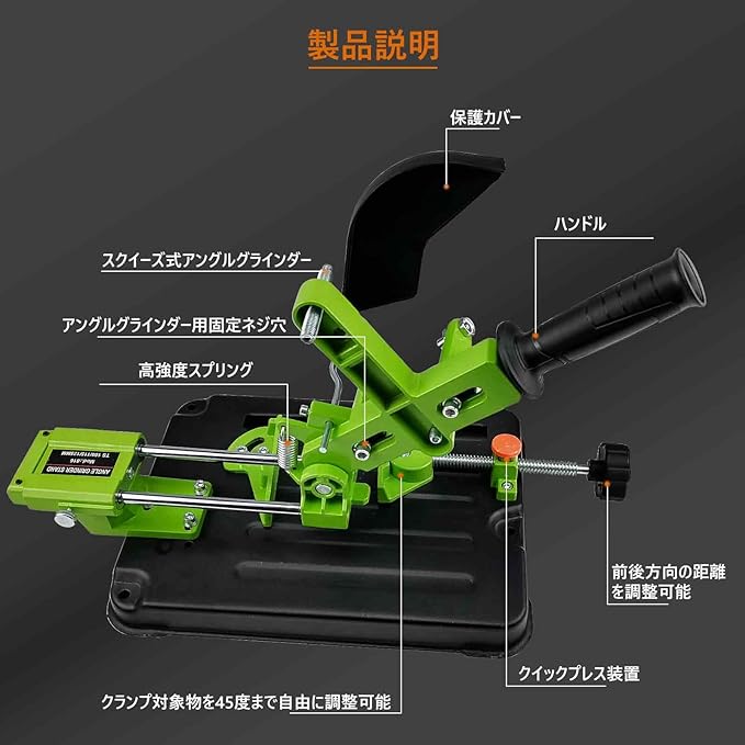 【安全で信頼できる】:厚くなった鉄ベースの設計により、使用中のアングルホルダーがより安定します。ブレード保護カバーは手を効果的に保護することもできます。クイックプレスボタンを使用すると、クランプ範囲をすばやく調整できます。