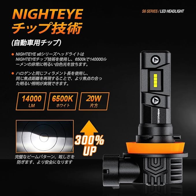 『簡単に取り付け』NIGHTEYE ファンレス H11 led ヘッドライト製品はledサイズ問題は解決し、ソケットから上部分はハロゲンより11.5mm短く、下部はハロゲンより6.5mm短いです。狭いスペースの車でも心配いりません。ハロゲンバルブを使用していた車でも、簡単にh11 ヘッドライト ledを取り付けることができます。ジムニーなどの車種でもポン付けできました。