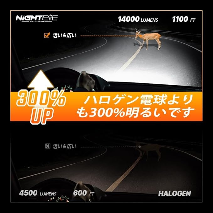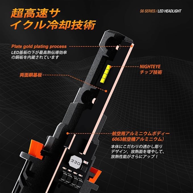 『三重放熱&IP68防水』他のh11 ledを取り付けばっかりで不点灯になる原因はファンの調子が悪くLEDチップが高温を耐えません、ランプが不点灯になりました。NIGHTEYEのH4 ledヘッドライト はファンレスのデザインで、騒音やファンの影響で不点灯など問題を全てありません。LED基板の下が最高熱伝導効率の銅板を内蔵されています、h4 led ヘッドライトが航空用アルミニウムボディーに熱を伝導して、本体にこだわりの透かし彫りデザイン,放熱面を増やして、放熱性能がさらにアップ!3重放熱実現!空気への放熱効率は従来品よりもっと速くてしています。さらに、IP68の防水防塵レベルで、極端な環境でも、しっかり発光できます。お客様の安全運転をお守りします。