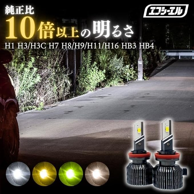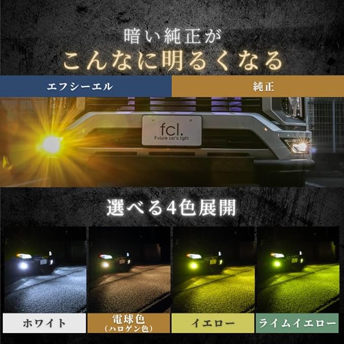 【圧倒的な光量維持と実用性】 エフシーエルのレジェンダリーシリーズは、点灯直後から安定時まで明るさがほとんど低下しない設計を実現。一般的なLEDが時間経過で減光する中、本製品は高い水準で光量を維持し、夜間の視認性を確保します。純正ハロゲン比10倍以上の明るさで、HIDを超える視界を提供。ホワイト、イエロー、ライムイエロー、電球色から選べる豊富なカラーバリエーションで、カスタムと実用性を両立した車検対応モデルです。