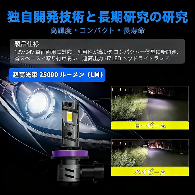 【三重放熱 50000時間長寿命】 h11ヘッドライト バルブは、一体成型の航空級アルミニウム合金ボディに、高速冷却ファンと高熱伝導銅基板を組み合わせた三重放熱システムを採用。LEDチップの発生熱を効率的に排出し、高温環境下での光衰えを抑制し、長寿命と安定した性能を保証します。