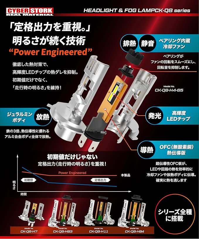高性能チップ+OFC銅基板で安定発光 高輝度LEDチップと無酸素銅導熱基板を採用し、長時間使用でも明るさが落ちにくい高い安定性を実現。