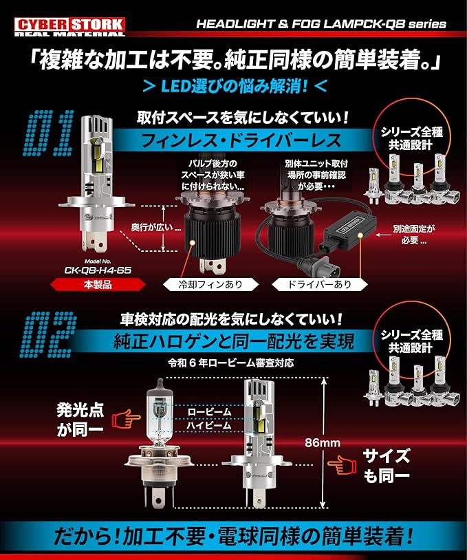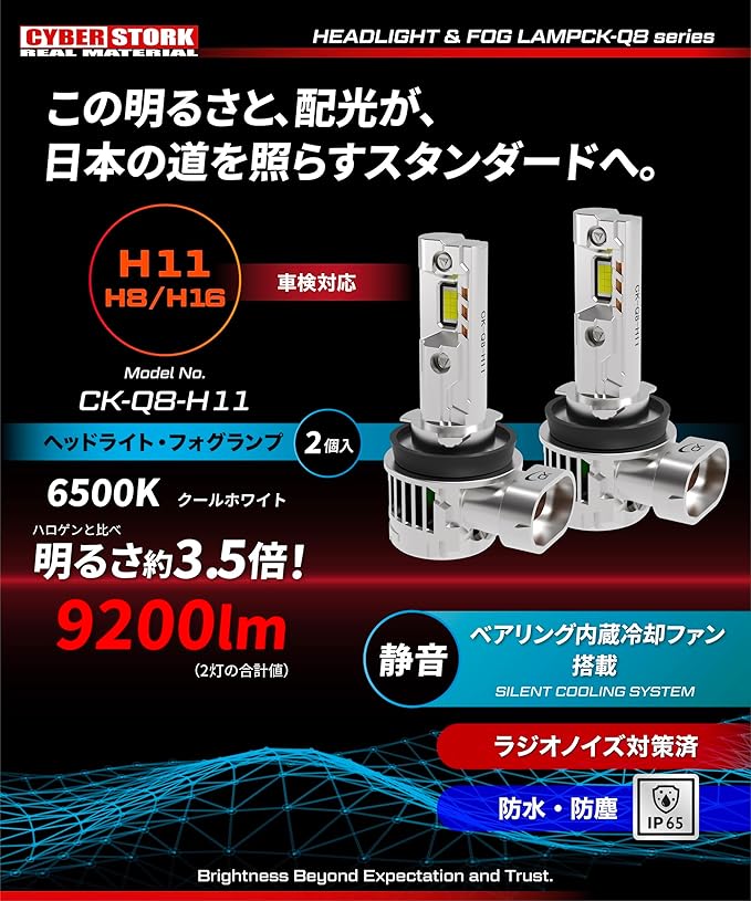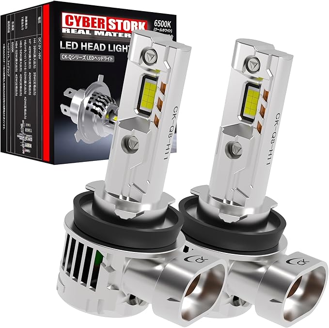 CYBERSTORK サイバーストーク 日本メーカー H8 H11 H16 LEDヘッド&フォグライト192,000cd ホワイト 車検対応 9,200ルーメン 配線レス 6500K 取付簡単 爆光 12V 2本1セット ck-q8-h11 | KAZESHOP