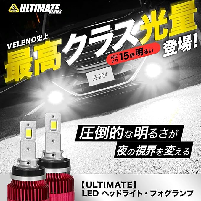 【実測値14900lmの白色光】ヴェレーノアルティメットシリーズの発光力と配光で 夜間・雨天・霧でも路面をワイドに明るく。高出力LEDフォグランプ、ヘッドライトで夜間の視界確保と見えやすさで運転が楽に