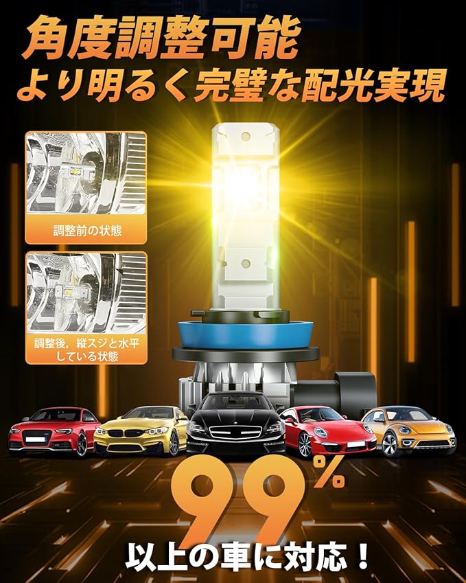 【角度調整可能】BORDAN h16 led フォグランプは角度調整が可能!リフレクターの形状に合わせて細かい調整が可能で、よりお車に合った最適な配光を実現出来ます。さらに配光設計にこだわりLED発光点を純正バルブの発光点にあわせ精密に設計したので、ハロゲンバルブと同様の正確なカットラインを実現します。約99%の国内車に適用します。ご注意:本製品は12V車のみ対応しています。24V車には適合していません。