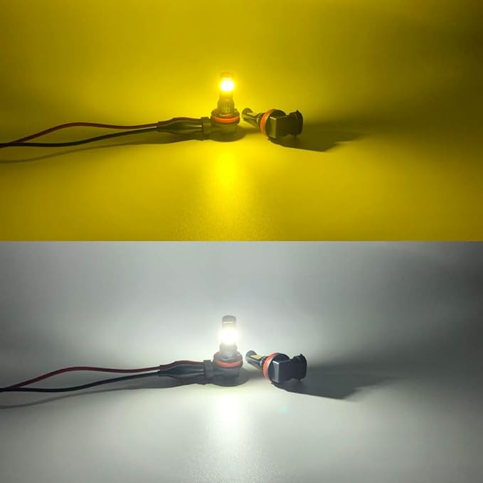 【2色発光!スイッチのON/OFFで簡単切替!】路面環境 気分によって簡単に色を変えられるLEDバルブ。一つのバルブに2種のLEDチップを採用し、新開発の切り替え制御機能を融合し、発光色を変更したい場合バルブを交換する必要がなく、フォグランプのスイッチをON->OFF->ON続けて操作して色を変更します。ライトスイッチでON ホワイト6000K→OFF→ONイエロー3000K→OFF→ONホワイト6000K。