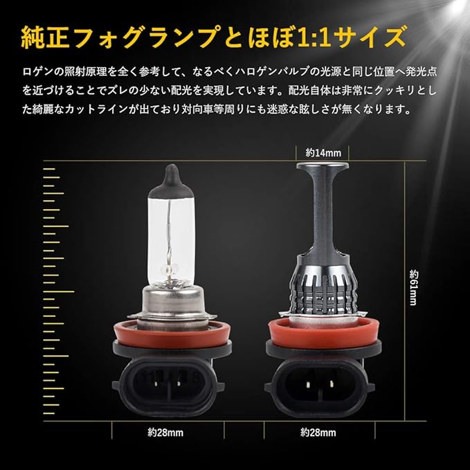 【発光効率に優れ】高品質3030SMDチップ採用、均一 高効率の発光特典を持って、超輝度で普通のチップと比べ発光率はアップします。市販のハロゲンより省エネルギーの上で、明るさは大幅にアップ。夜間の走行が非常に楽になり、安全に運転しています。