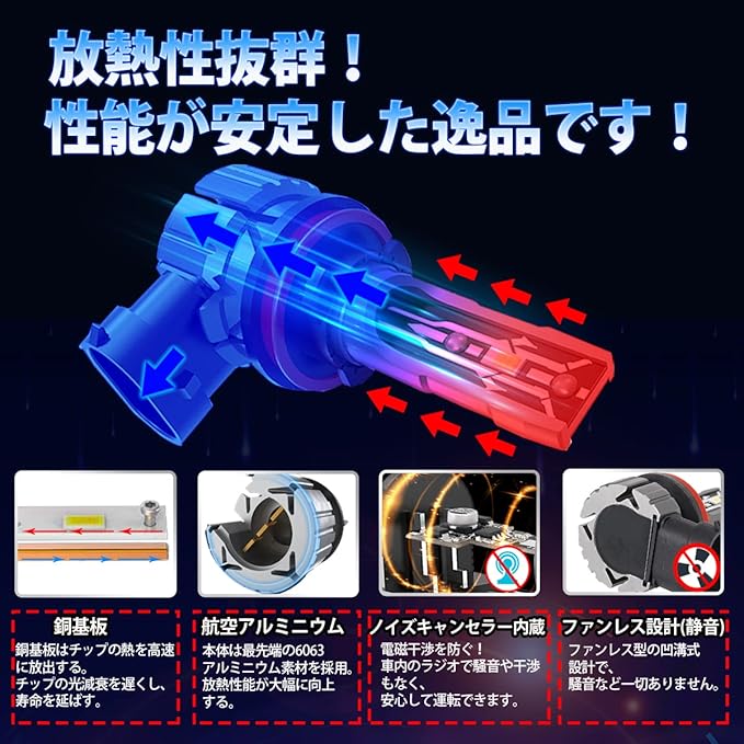【ハロゲンサイズ型・簡単取付】コントローラー内蔵の一体型コンパクト設計。純正バルブと同等サイズのため、特別な加工は不要でスムーズに交換可能。初心者の方でも扱いやすく、省スペースでの取り付けができます。ノイズキャンセラー内蔵により、車内機器への電磁干渉を抑えた設計です。(DC9V-18V対応)