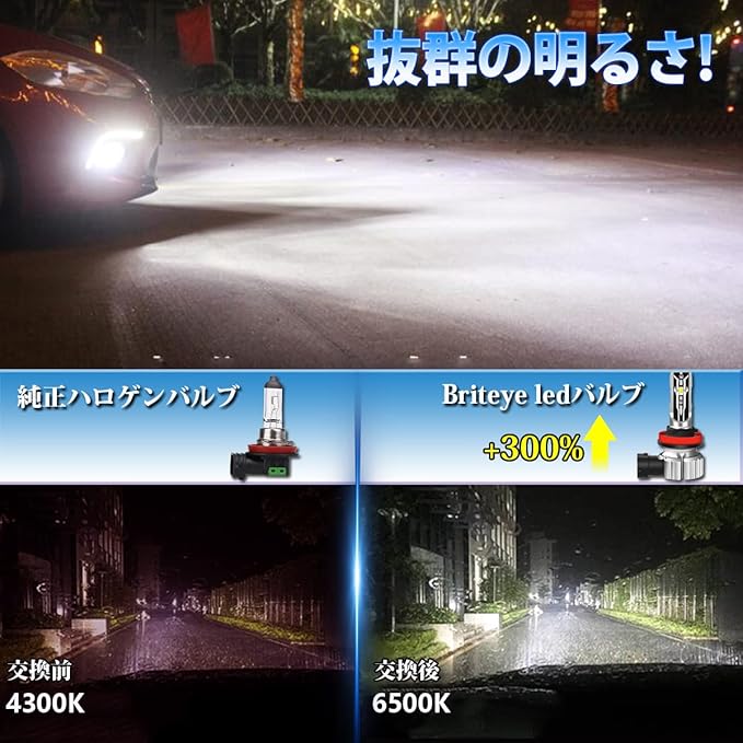 【実用性に優れたLEDバルブ・2年保証】Briteye正規品。無極性設計で扱いやすく、日常使いに適した耐久性と性能を備えたLEDバルブです。【対応バルブ型式:H8/H11/H9/H16(フォグ/ヘッドライト兼用)|発光色:6000K-6500K ホワイト|消費電力:約30W(片方)|電圧:DC9V-18V|セット内容:H11 LEDバルブ 2個】※保証期間内に不具合が発生した場合は、交換品の発送にてご対応いたします。