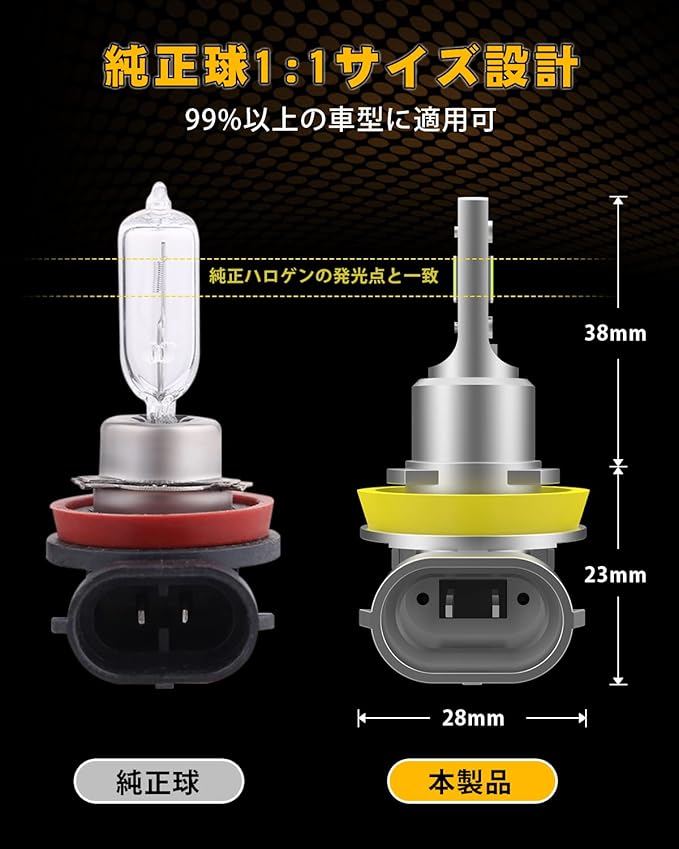 ★【IP65防水と取付簡単】本当の一体型&配線なし!差し込むだけで完成!取り付け超簡単!スペースが狭い車でも取付でき!国際標準IP65防水レベルで、雨や雪の日も心配なし。H8 / H9 / H11 / H16(国産車)の純正球と交換して、直接交換できます。対応場所:フォグランプ。