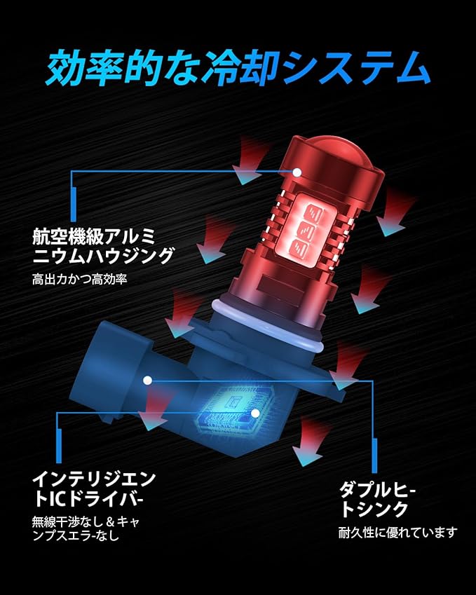 【信頼性の高い性能】H11/H8/H9 LEDフォグライトバルブは航空級アルミニウム合金筐体、スマート温度制御チップ、先進的な放熱管理技術を採用し、効率的かつ安定した放熱によりフォグライトの寿命と性能を最大化。従来のハロゲンバルブより放熱効果95%向上。交換頻度を減らし、長期的な信頼性を提供。