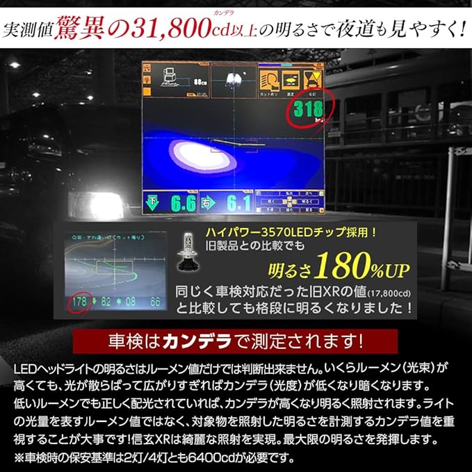 【両面銅基板採用で照度性UP!・ヒートパイプ採用で放熱性UP!明るさ・耐久性に優れた30000時間もの長寿命バルブ】ハイパワー3570チップ搭載で、明るさが従来品より30%アップ、耐熱性能・明るさ・安定性等も向上した工場で配光調節を行った特注品です。また、スイッチオンで100%の明るさになるので、MAX光量まで少し時間のかかるHIDよりも安全性が向上します。30000時間もの長寿命を実現。また、IP67等級の高い防水・防塵性能&放熱部分に航空7級アルミ材を使用した、水にも熱にも強い、耐久性抜群のLEDになっています。【高性能LEDで快適に!トラックやハイブリッド車にも対応】FMラジオ等に雑音が入らないようにEMCノイズ対策機能を搭載。「取付け易さ」「長寿命」「立ち上がりスピード」トータルバランスに優れたLEDヘッドライトをぜひお試しください。