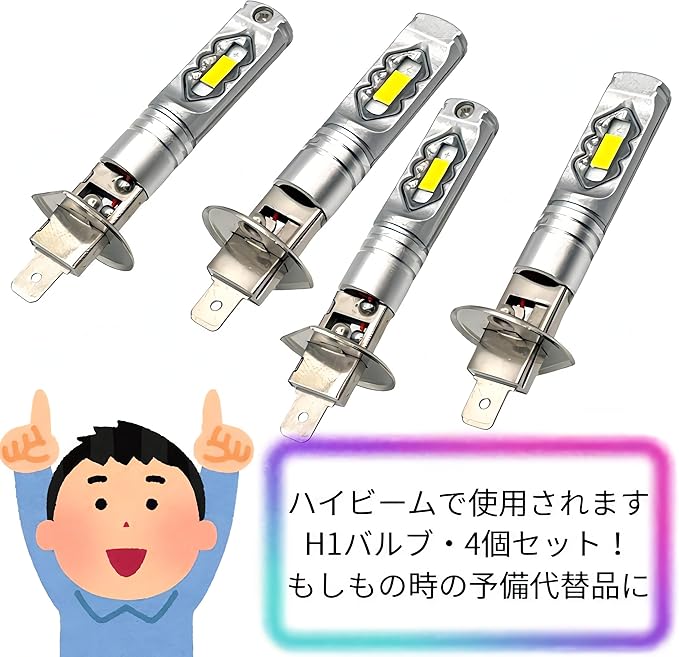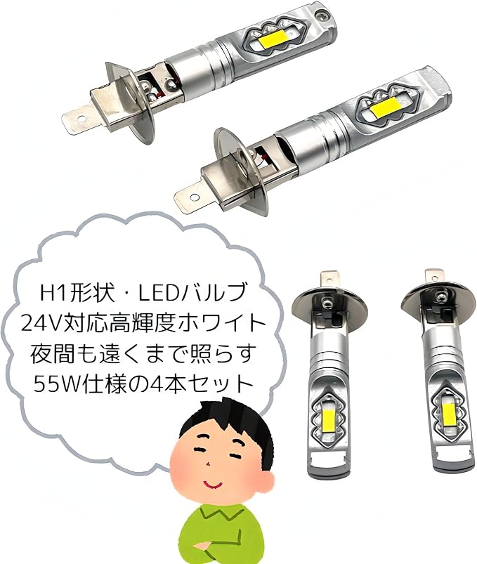 ☆bubulu LED H1バルブは55Wの強力な明るさと6000Kの爆白光を提供します。夜間や悪天候時の視認性を大幅に向上させ、安全なドライブをサポートします。12V及び24V対応で特に大型トラックやバスのハイビームに使用されていますH1バルブと交換するだけでハイビームの際もLEDの光で周囲を遠くまで照らし出すことが出来ます。