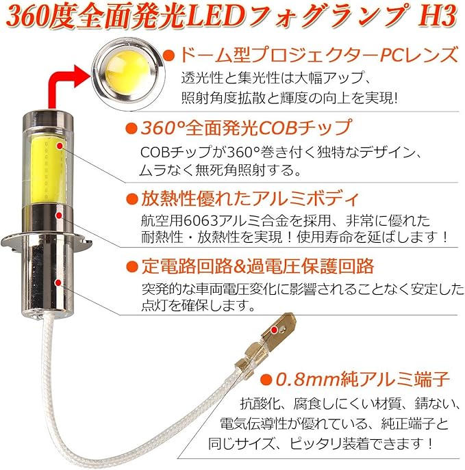 ●ソケット形状:H3(無極性)●動作電圧:9-60V(12V/24V兼用) ●色温度:イエロー(3000K~3300K) ●ルーメン:800LM/個 ●防水ラベル:IP65 ●2個セット●【一年間安心保証】万が一不良品があり、ご連絡を頂けると必ず迅速に対応致します。