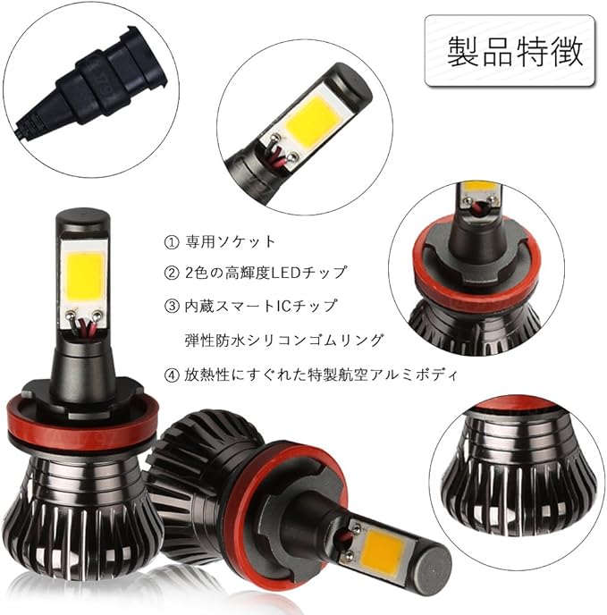 1797 LEDフォグランプ H8 H11 H16 ホワイト アイスブルー 2色 フォグランプ LED H8 H11 H16 (国産車) 白 ブルー 青 2色切り替えタイプ H11 LED フォグ LEDバルブ 12V 車用 COBチップ搭載 2800LM 30W 2個セット | KAZESHOP