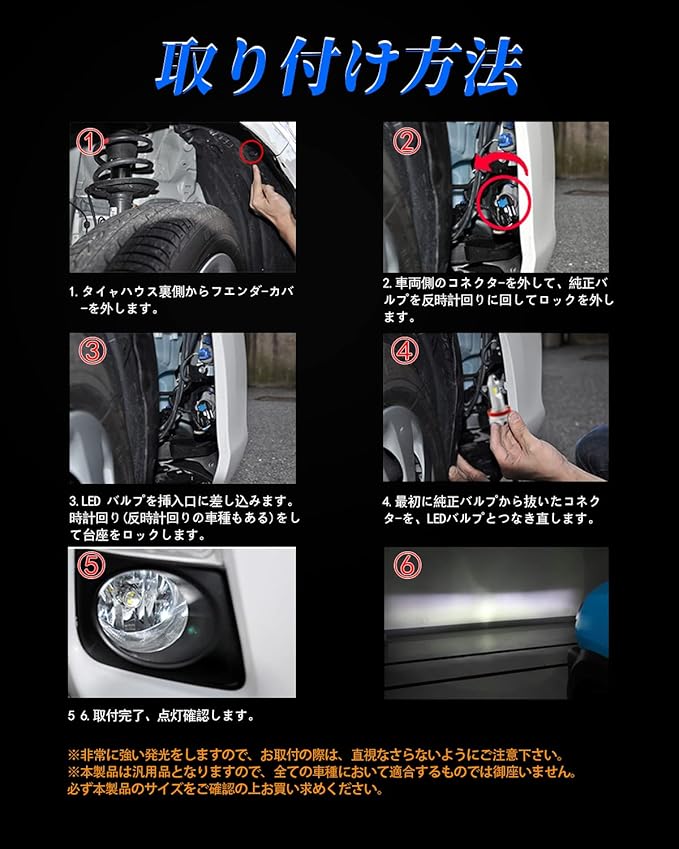 H16(国産車)の純正球と交換して、直接交換できます。IP67レベルの優れた防水・防塵性能で、粉塵と雨水の侵入を