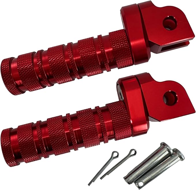 ✅【足元から、走りの印象を変える。】バイクステップはスポーティーなデザインと高い機能性を両立した汎用フットペグです。アルミ製の軽量ボディに鮮やかなレッドカラーを採用し、愛車の足元をスタイリッシュに演出。カスタムパーツとしての存在感も抜群です。