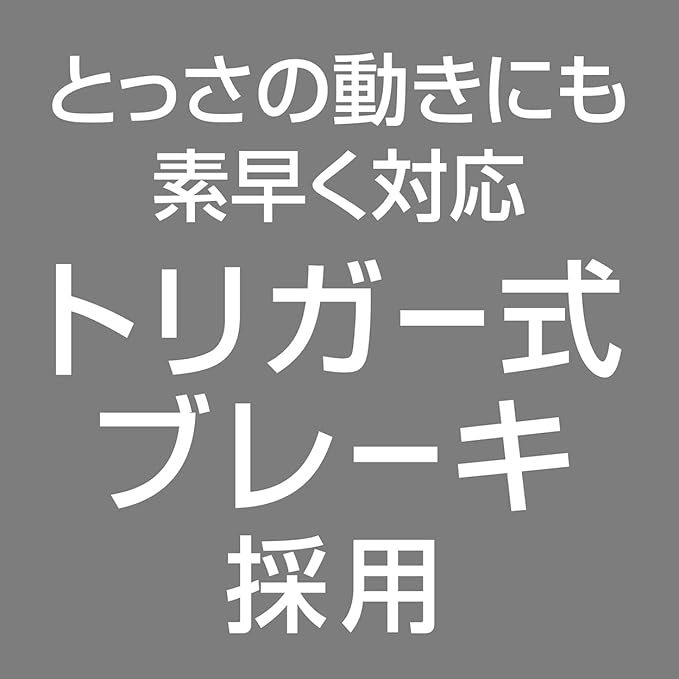 とっさの動きにも素早く対応出来るトリガー式ブレーキ、安心のストラップ付、夜でも安心の反射ロープ。
