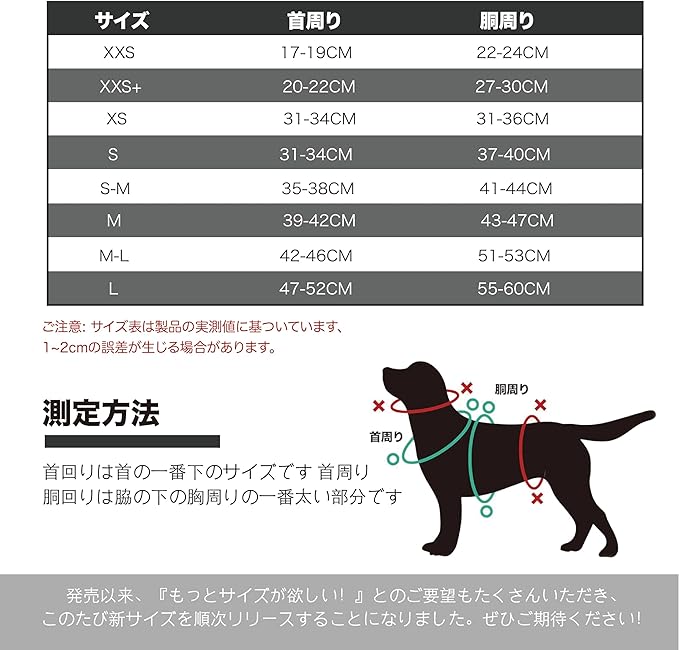 【サイズ】ご購入前に愛犬の実際に首囲と胴囲サイズを測り、適切なサイズのハーネスをお選びください。