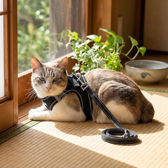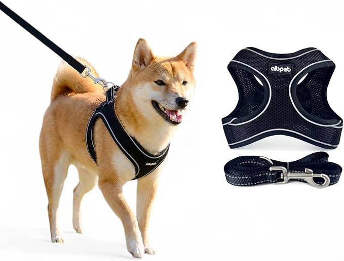 犬用ハーネス&リードセット 超小型犬から全犬種対応 猫用ハーネス リード引っ張り防止設計 調節可能サイズ夜間反射機能 着脱簡単耐久性・通気性・柔らかメッシュ素材採用 (black, S) | KAZESHOP