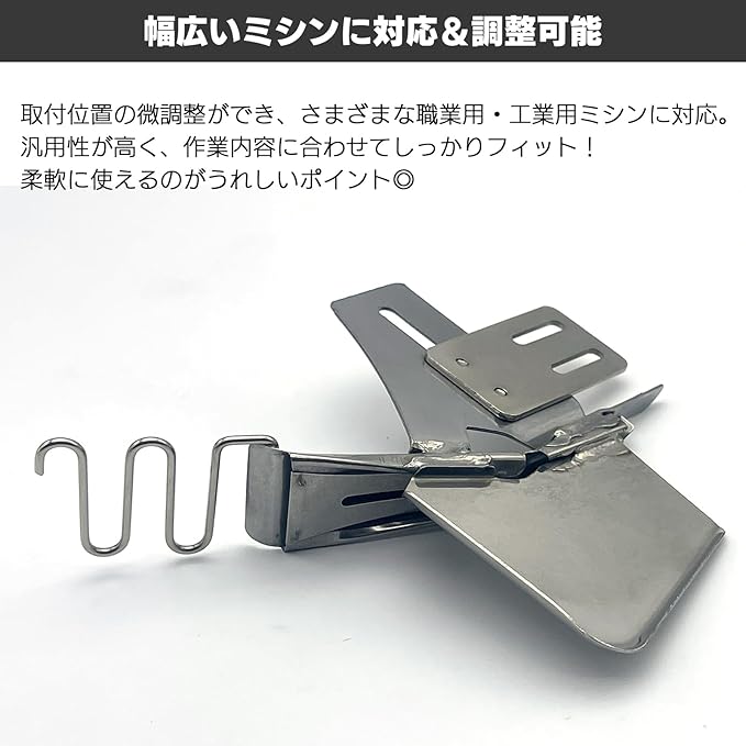 取付位置の微調整が可能な設計で様々な機種の職業用ミシン・工業用ミシンに対応。汎用性が高く、作業内容に合わせて柔軟に活用できます。