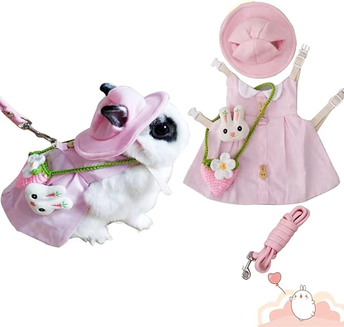【かわいいうさぎ服】:パッケージには、1個のペットのスリングドレス、1個の小動物のハーネス、1個の小動物の帽子、1個のミニバッグが含まれています。完全なセットと十分な量はあなたの小動物の毎日の使用と交換を満たすことができます。