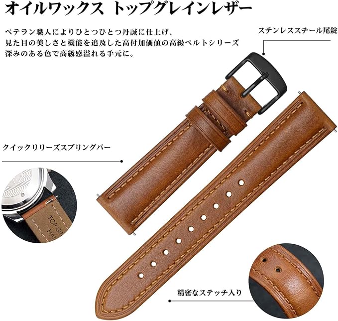 【柔軟で快適】純粋な手作りで、お届け時の時計バンドは少し硬いですが、使っていくうちに徐々に革が柔らかくなり、腕に馴染んでき、とても快適です。