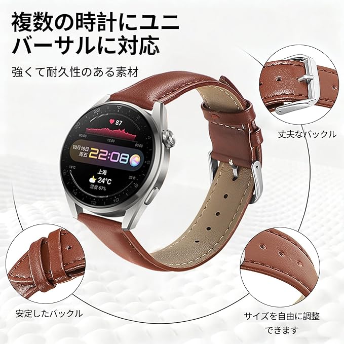 この時計バンドは幅22mmのバネ棒(スプリングバー)を使うHua-weiに適用します。注文する前に腕時計ダイヤルのラグ幅をご確認ください。