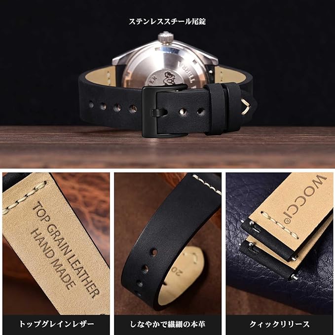 [WOCCI] 時計ベルト 本革 アンティーク腕時計バンド 17mm 18mm 19mm 20mm 21mm 22mm 24mm 26mmトップグレインレザー Quick Release | KAZESHOP