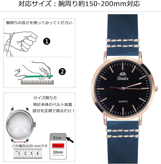 【サイズ】この腕時計バンドは伝統的な腕時計やスマートウォッチに適用します。剣先側75mm /尾錠側125mm (バックルを除く)、厚み:約3mm。九つ穴があり、適合手首の長さは150-200mmです。詳細寸法について、5番目の画像を参照ください。
