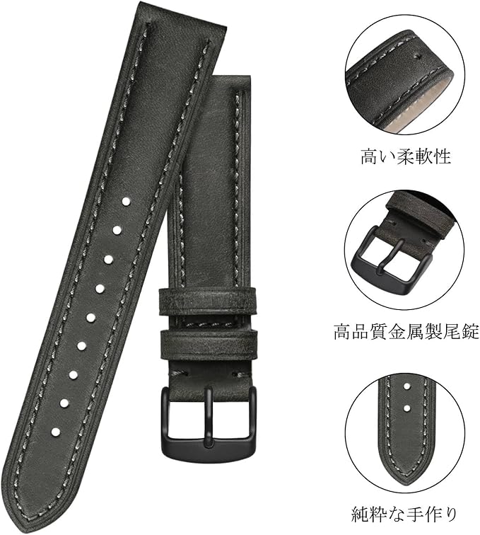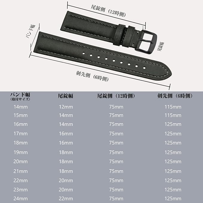 【パッケージ内容】 1*腕時計ベルト、1*時計ベルトバネ棒外し、4*バネ棒 ラグ幅 14mm、15mm、16mm、17mm、18mm、19mm、20mm、21mm、22mm、23mm、 24mmの腕時計やスマートウォッチに適用します。 【ご注意】 本革ですので、水濡れや長時間の使用には色褪せなどの状況が避けられません。直接に水に浸透しないでく ださい。